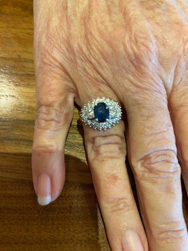 Oval Sapphire and Diamond Halo Cluster Ring