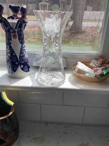 Etched and Cut Lead Crystal Trumpet Vase