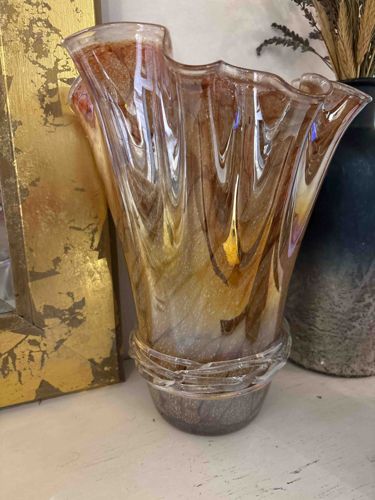 Hand-Blown Art Glass Handkerchief Vase with Wrapped Base
