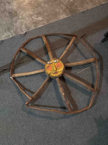 Folk Art Painted Wooden Sun Spokes Wheel