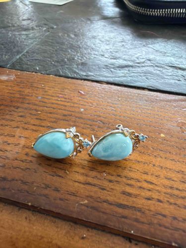 Pear-Shaped Larimar and Mixed Metal Post Earrings