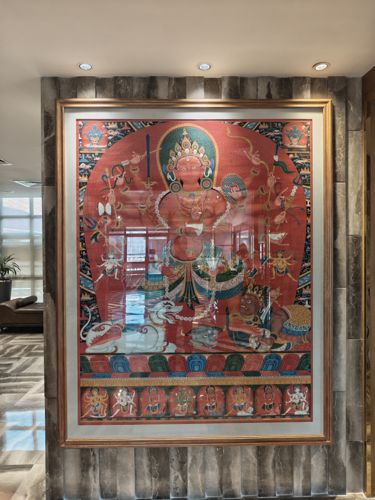Framed Tibetan Buddhist Thangka Painting of a Red Guardian Deity
