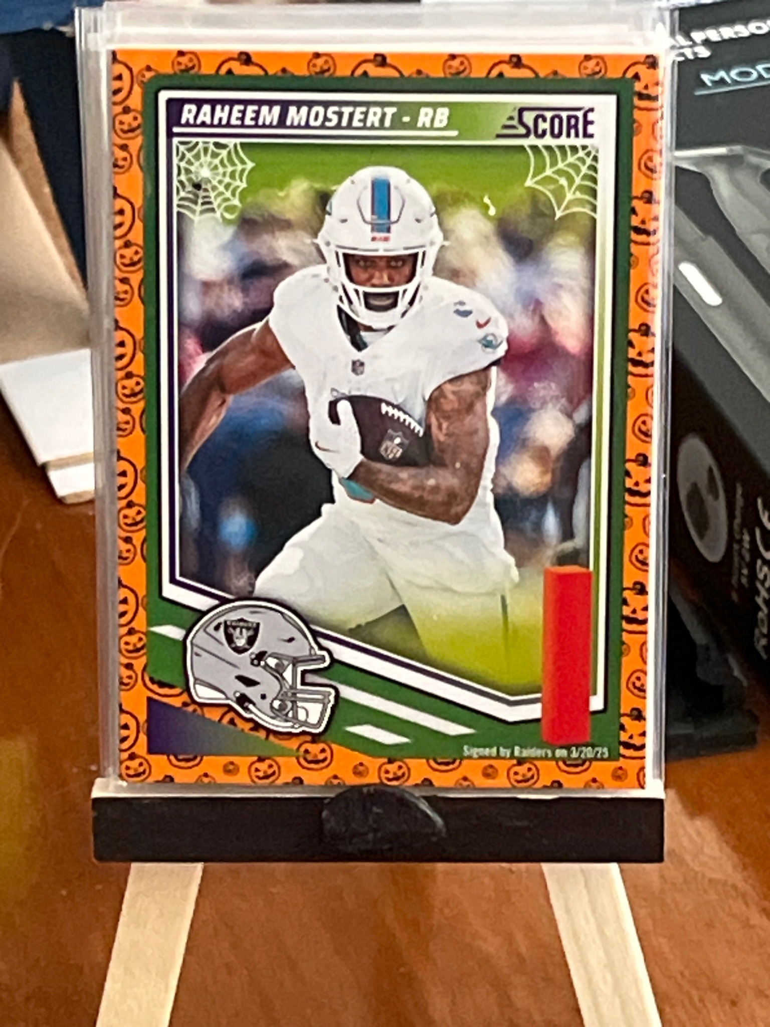 2023 Panini Score Raheem Mostert Pumpkin Parallel Football Card