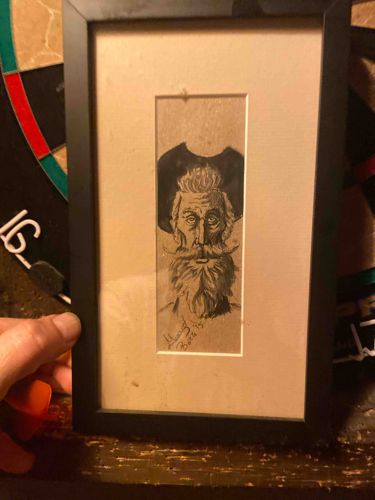 Framed Pen and Ink Portrait Sketch of a Bearded Man by Garry Bozz