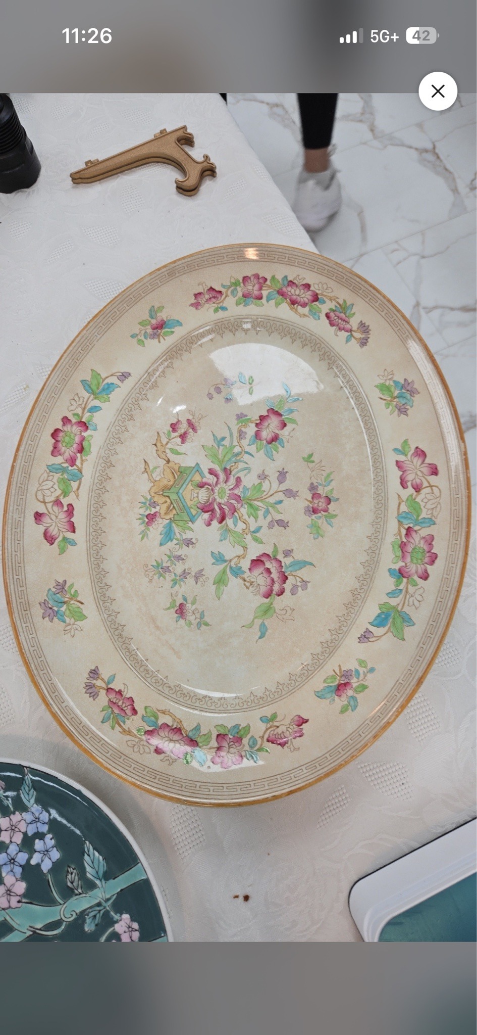 Vintage Oval Ceramic Floral Serving Platter