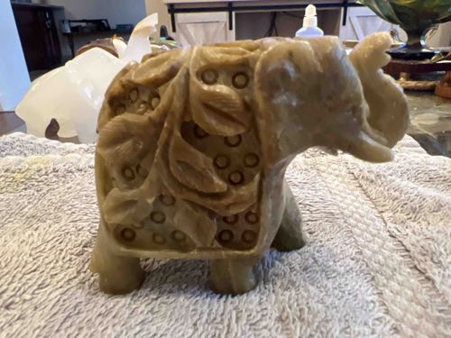 Hand-Carved Soapstone Jali Elephant Figurine