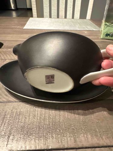 Trend Pacific Mid-Century Modern Matte Black Gravy Boat with Underplate