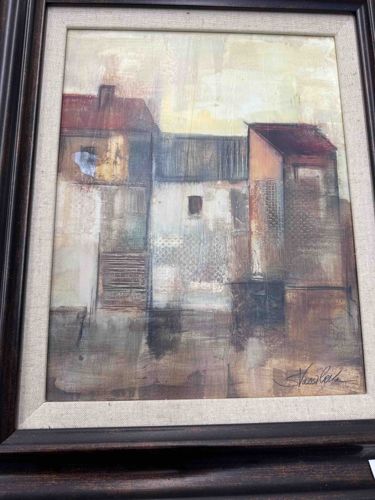Mid-Century Abstract Village Mixed Media Painting by Nicola