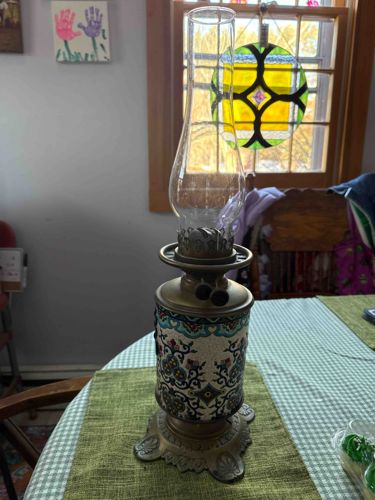 Antique Cloisonné Enamel Oil Lamp with Brass Base