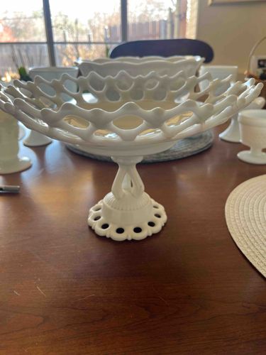 Westmoreland Milk Glass Lace Edge Footed Compote or Fruit Bowl