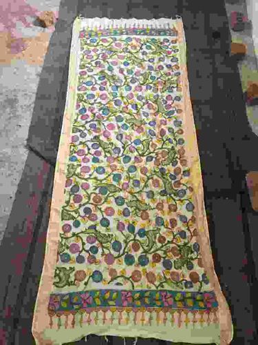 Madhubani (Mithila) Hand-Painted Silk Dupatta