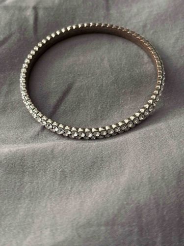 Rhinestone Encrusted Silver-Tone Bangle Bracelet