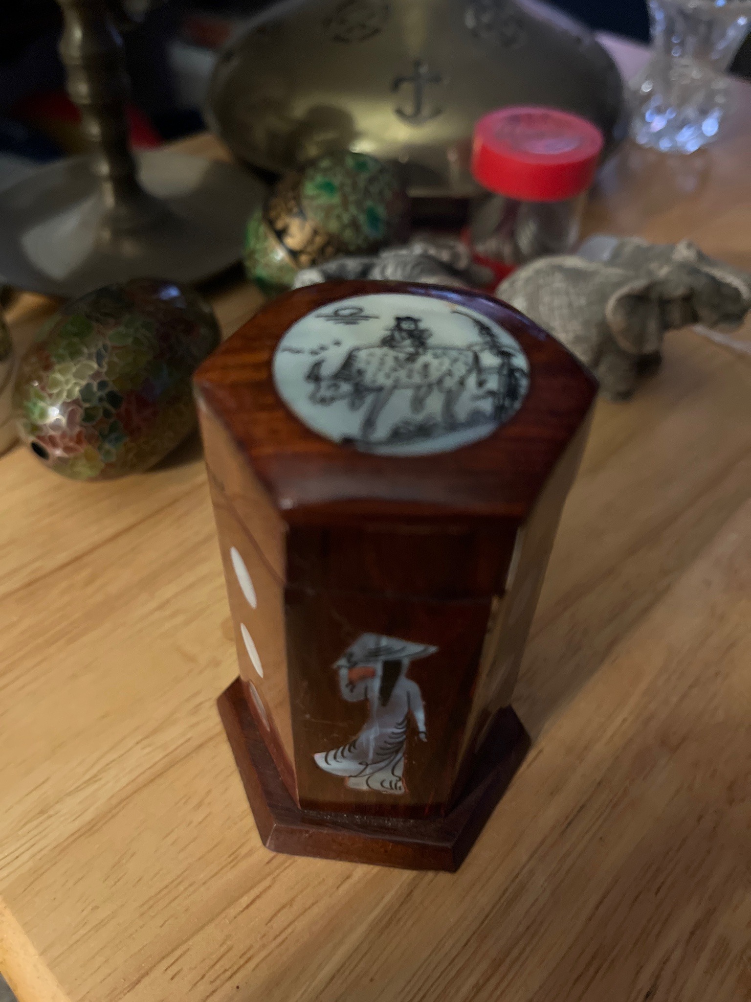 Vintage Hexagonal Vietnamese Inlay Lacquerware Toothpick Holder