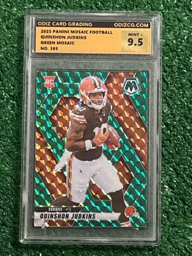 2025 Panini Mosaic Football Quinshon Judkins Green Mosaic Rookie Card #365 - ODIZ Graded 9.5