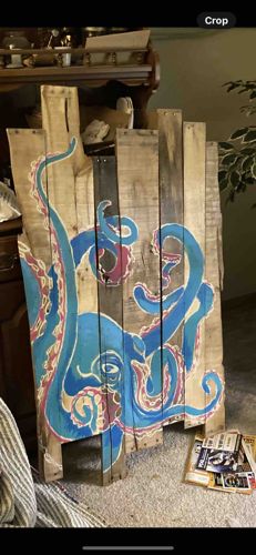 Modern Folk Art Octopus Painting on Reclaimed Wood Slat Panel