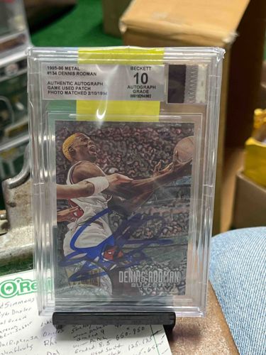 1995-96 Metal Dennis Rodman #134 Authenticated Autographed Game Used Patch Card (Beckett 10 Auto Grade)