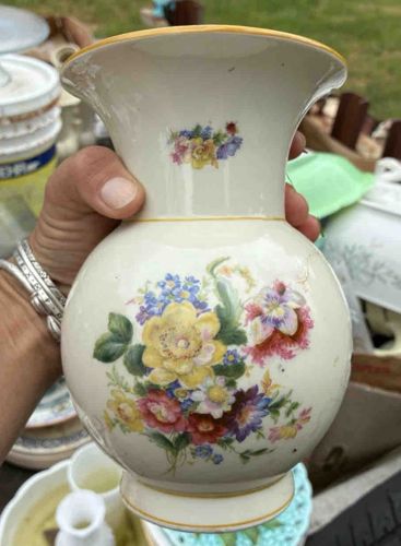 Vintage Floral Porcelain Baluster Vase with Flared Rim