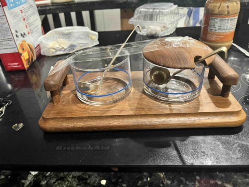 Mid-Century Modern Teak and Glass Jam/Condiment Set