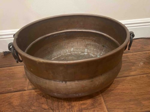 Antique Copper Apple Butter Kettle with Wrought Iron Handles
