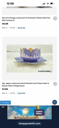 Vintage Japanese Lusterware Lotus Flower Bowl and Saucer Set