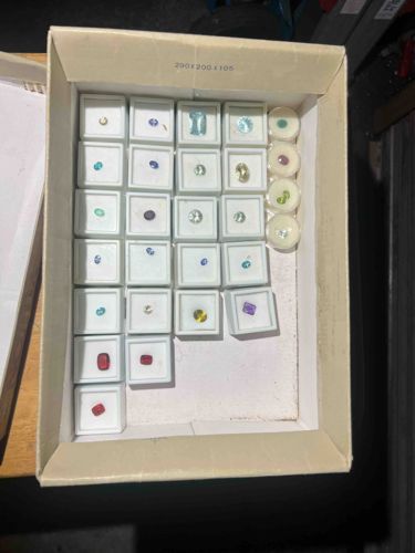 Collection of Loose Faceted Gemstones in Display Cases