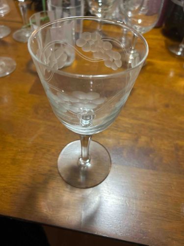 Vintage French Floral Etched Crystal Stemware