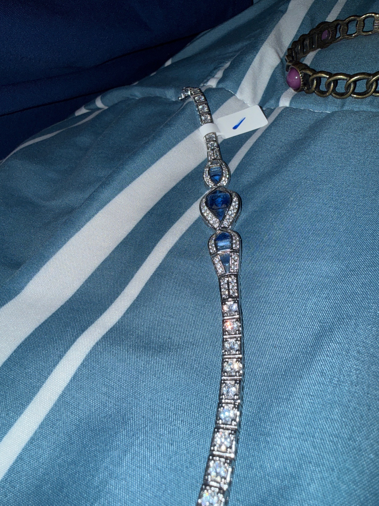 Art Deco Style Simulated Sapphire and Diamond Tennis Bracelet