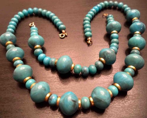 Vintage Turquoise-Colored Graduated Bead Necklace and Bracelet Set
