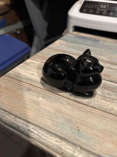 Vintage Black Obsidian Glass Crouching Cat Figurine