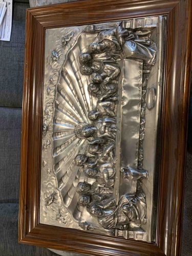 Vintage Repoussé The Last Supper Metal Wall Plaque