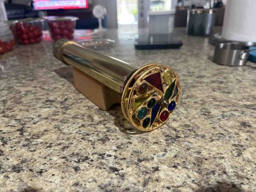 Polished Brass Wheel Kaleidoscope on Wooden Stand