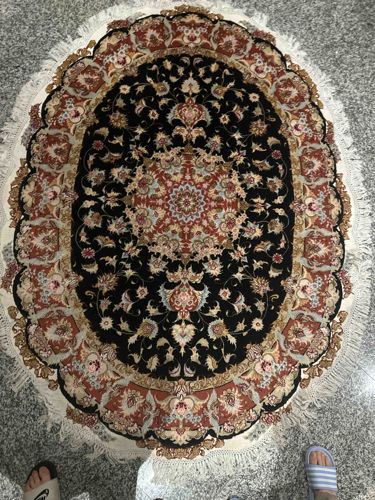 Oval Hand-Knotted Persian Style Silk or Fine Wool Tabriz Rug