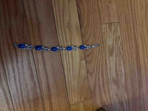 Vintage Lapis Lazuli and Silver-Tone Panel Link Bracelet