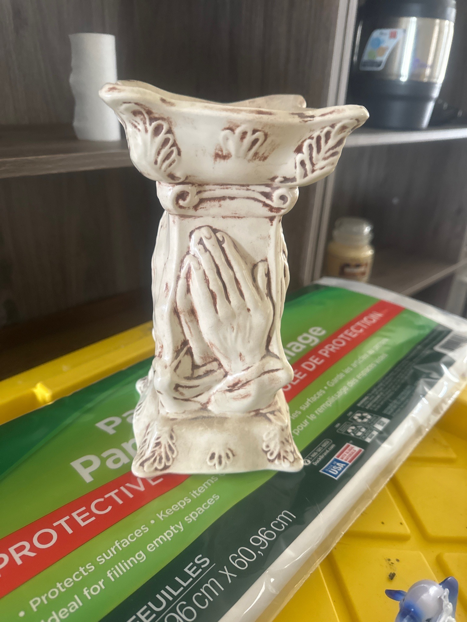 Praying Hands Pedestal Pillar Candle Holder