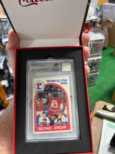 Michael Jordan 1989-90 NBA Hoops Card #21 Jersey Fusion Edition with Game-Used Swatch