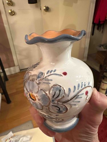 Painted small -med vase with nicks around wavy rim