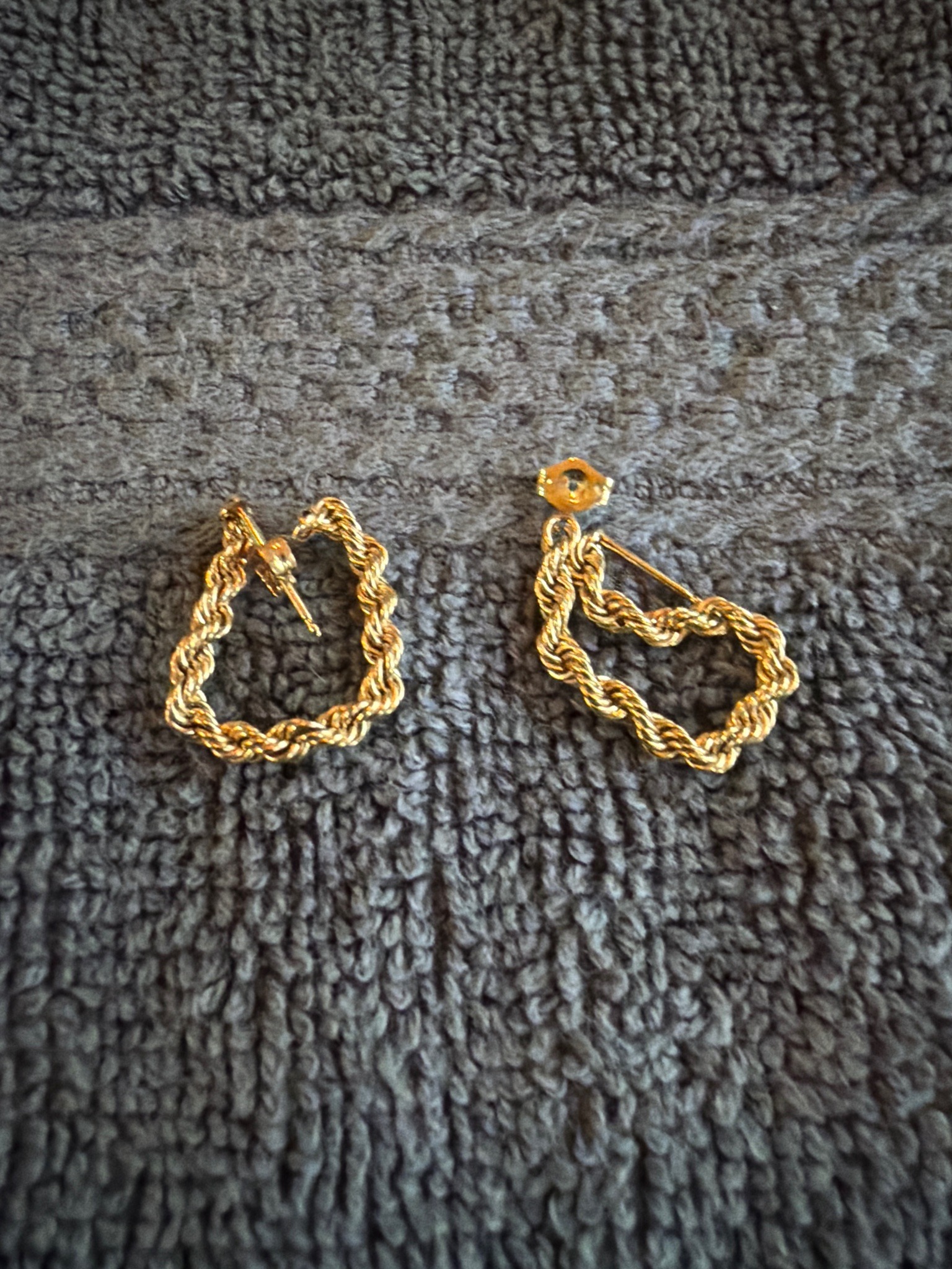 Vintage Twisted Rope Gold Heart-Shaped Hoop Earrings
