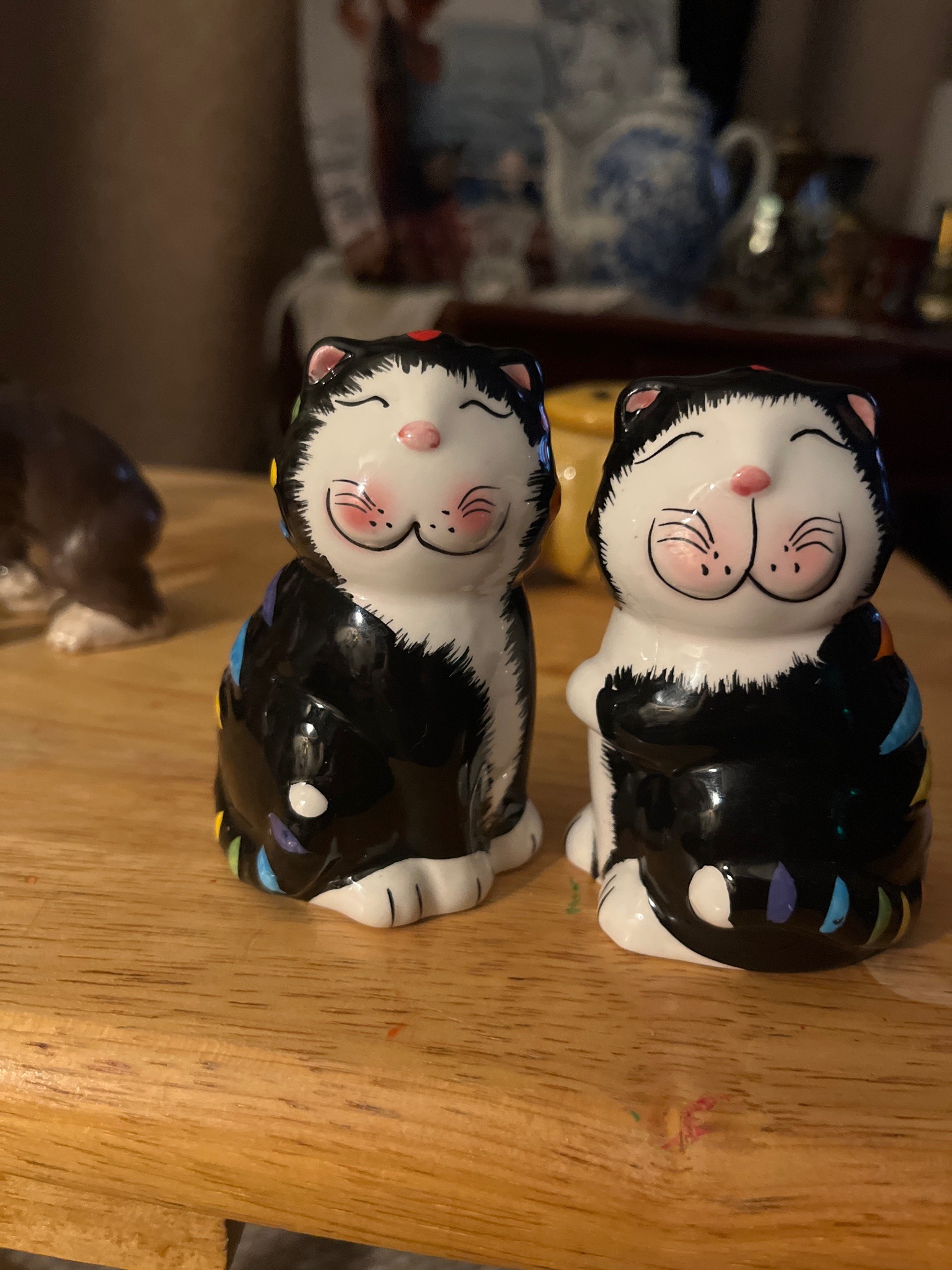Hand-Painted Ceramic Tuxedo Cat Salt and Pepper Shaker Set