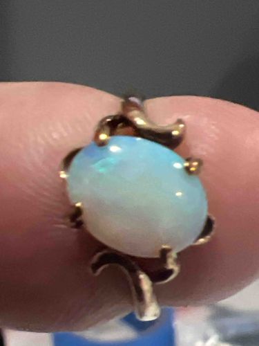 Vintage 10k Yellow Gold Oval Opal Solitaire Ring