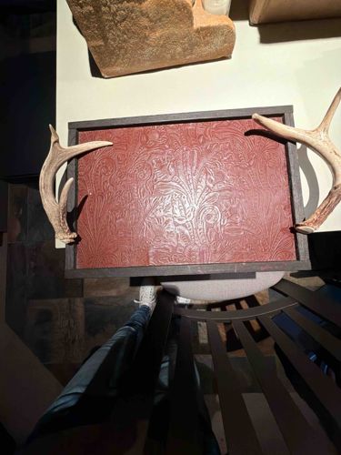Tooled Leather and Antler Decorative Tray