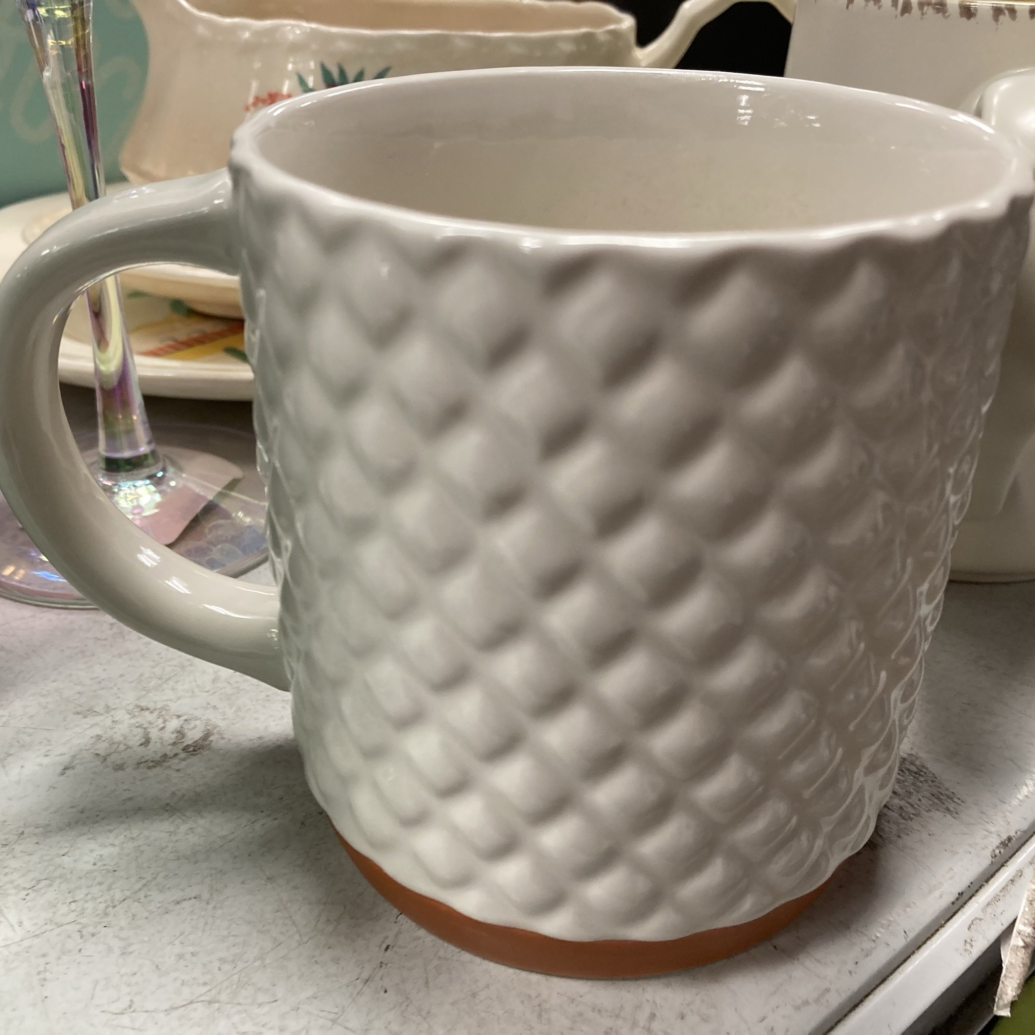 White Textured Lattice Stoneware Mug by Clay Art