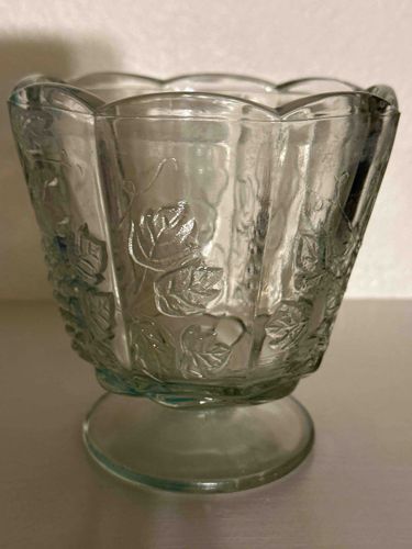 Pressed Glass Footed Rose Bowl with Grape and Vine Motif