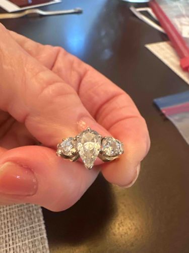 Three-Stone Pear and Round Cut Diamond Ring
