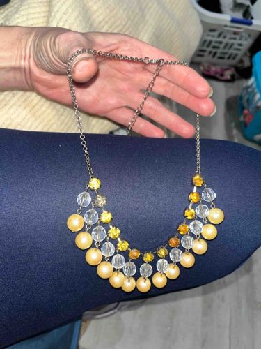Costume Bib Necklace with Yellow and Clear Faceted Beads and Faux Pearls