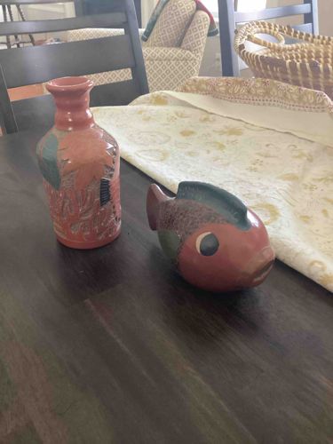 Ken Edwards Mexico El Palomar Tonala Pottery Vase and Fish Figurine