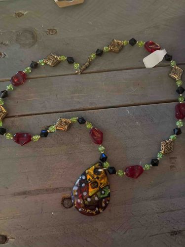 Mixed-Media Beaded Art Glass Pendant Necklace