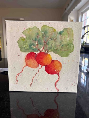 Original Watercolor Still Life of Radishes on Canvas
