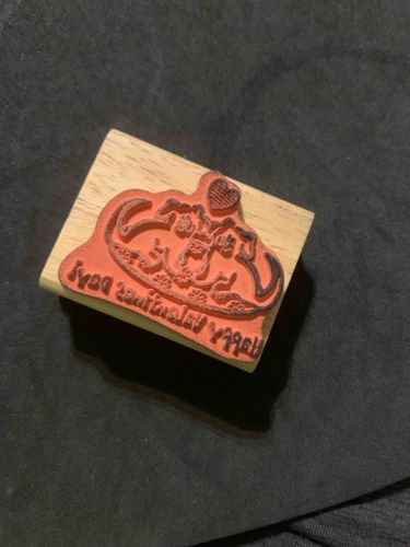 Vintage Wood-Mounted Rubber Heart and Text Valentines Stamp