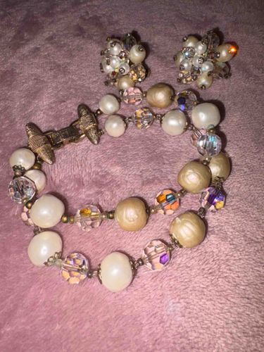 Vintage Vendome Faux Pearl and Aurora Borealis Crystal Demi-Parure