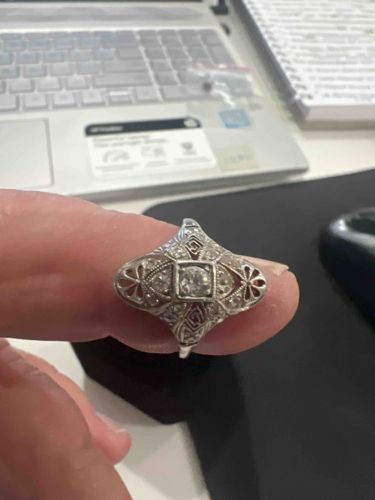 Art Deco 14k White Gold Filigree Diamond Dinner Ring